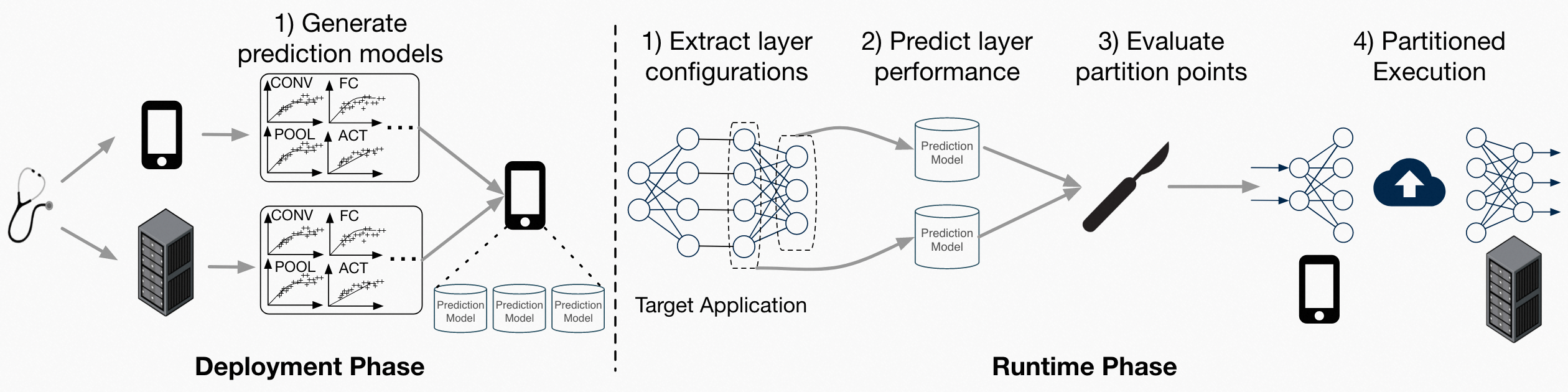 This paper presents **Neurosurgeon**, a lightweight scheduler to *automatically partition DNN computation* between mobile devices and data centers *at the granularity of neural network layers*.
